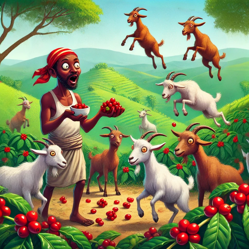 Kahveyle ilgili en bilinen efsane, Etiyopyalı çoban Kaldi’nin hikâyesidir. Rivayete göre, Kaldi bir gün keçilerini otlatırken onların her zamankinden farklı davrandığını fark eder. Keçiler, parlak kırmızı meyvelerle dolu bir ağacın etrafında toplanmış, bu meyveleri yedikten sonra coşkuyla zıplamaya ve enerjik bir şekilde koşuşturmaya başlamıştır. Kaldi, bu sıra dışı hareketliliğin nedenini anlamak için meyvelerden bir avuç toplar ve kendisi de dener.